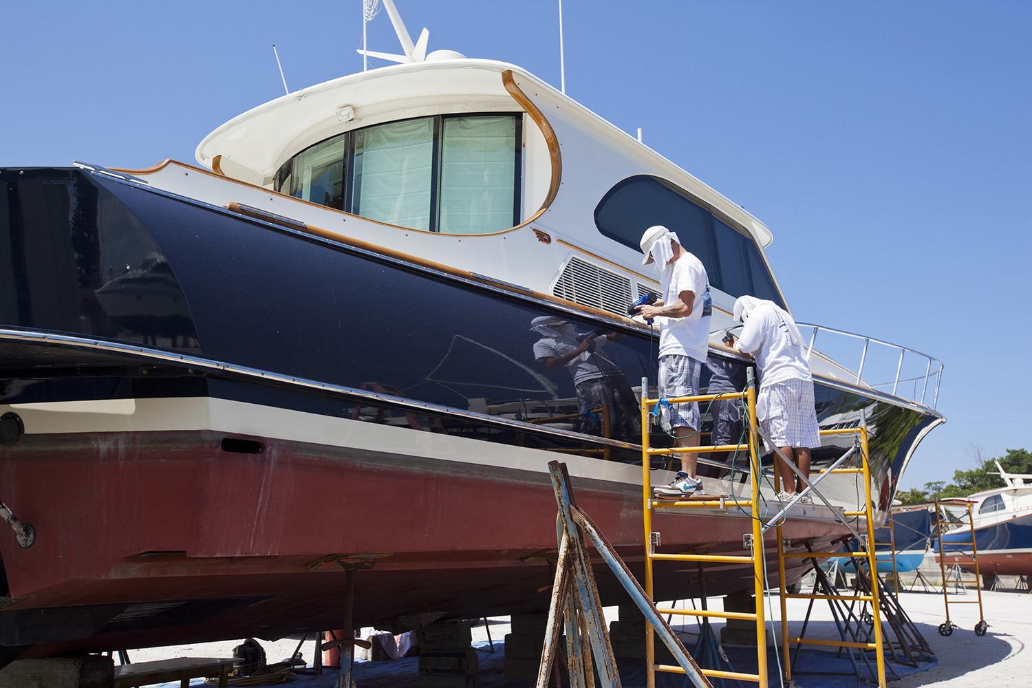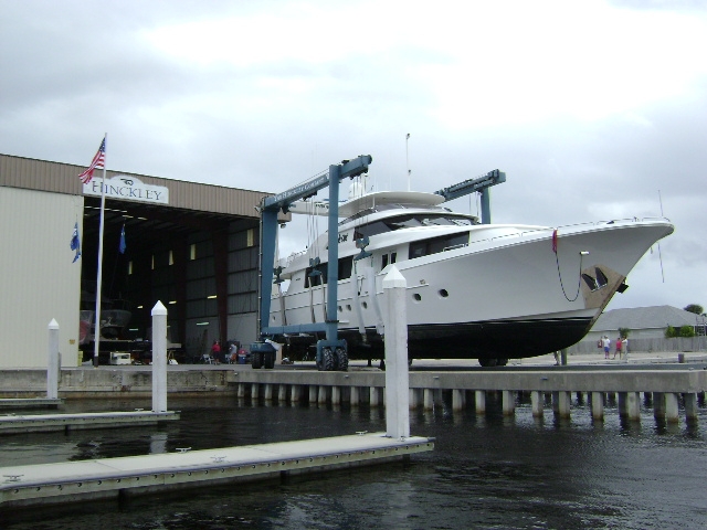Jim Smith Tournament Boats and Willis Marine, among other yacht manufacturers in the Southeast Florida region, choose Hinckley to commission their latest boats because of the capability and expertise of the team at the Stuart yard. Andy New is a Service Manager at Hinckley Yacht Services Stuart specializing in yachts in the 60’ – 120’ range like Ovation and others that would take a ride on the 150-ton Travelift. New says “it’s not the geography of the location, it’s the unique reputation Hinckley has as a pinnacle yachting brand when it comes to commissioning a new yacht. Commissioning at Hinckley Yacht Services Stuart and working with the Hinckley team adds peace of mind and elevates the customer experience. It is not uncommon for a new yacht we have commissioned here for a regional builder to return to Hinckley for upgrades and service.”
