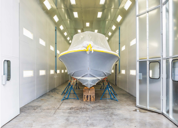 Whether you require Awlgrip, Alexseal, or other marine paint finish, Hinckley Stamford has a state of the art paint booth that will paint your boat to look like new. We take pride in being the best in the industry in yacht painting. Whether you need hull paint or a complete hull and deck paint job, we will be happy to provide an estimate for your boat and complete your new yacht painting project on time and on budget. While your yacht is with us, take advantage of our renowned fiberglass repair and gel-coat repair. Hinckley has all your boat painting and yacht finishing needs covered.