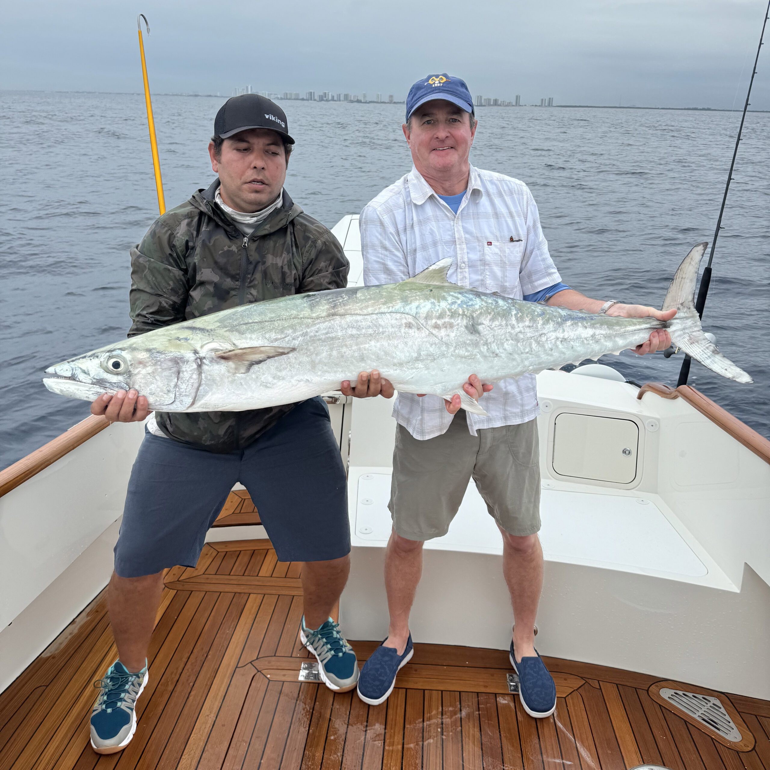 Fishing Guide Captain Rush and Jamie Everitt with 72-pound king mackerel caught aboard Everitt’s Hinckley 35.