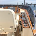 What hasn’t changed in the Flybridge edition? The spacious cockpit with seating all around. One level throughout salon and cockpit to make the space flow seamlessly. Between the interior and cockpit is an aft enclosure that disappears at the touch of a button. When the glass is retracted, the whole boat becomes a wide open express yacht with the feel of true sport boat. Closed, you have a fully heated or air conditioned retreat.