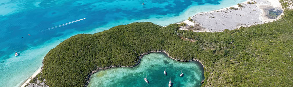 There may be more perfect crystal-clear turquoise water somewhere else on this planet, but we have yet to find it! Exuma’s geography makes this a boater’s paradise. The Exuma Sound offers deep water for straight-line passages between islands on calm days. But if the prevailing east wind comes up, you can work your way up and down the western side of the cays in 10-15 feet of water on the Exuma Bank. Don’t miss the large marine park that provides unspoiled islands to explore.
